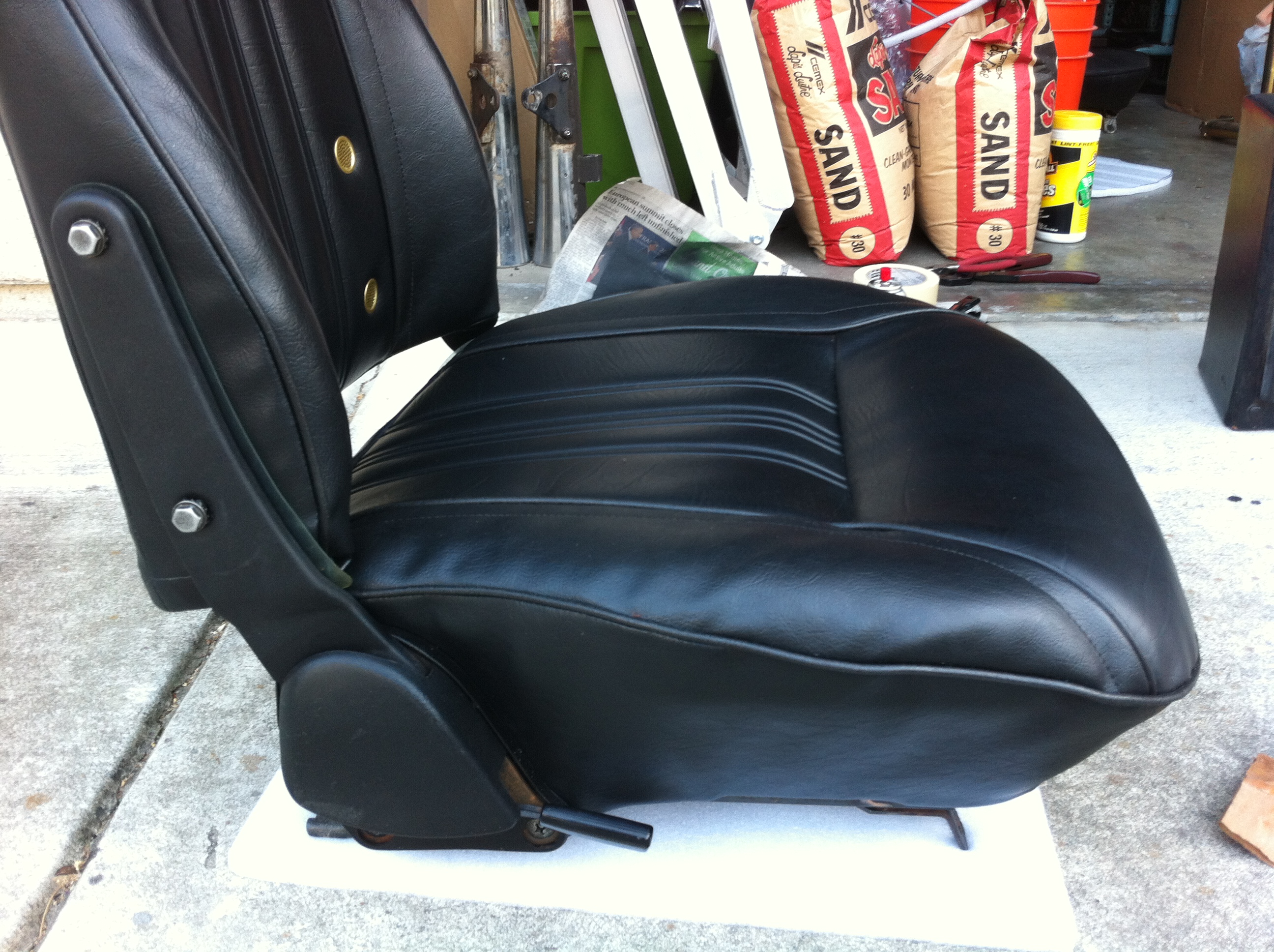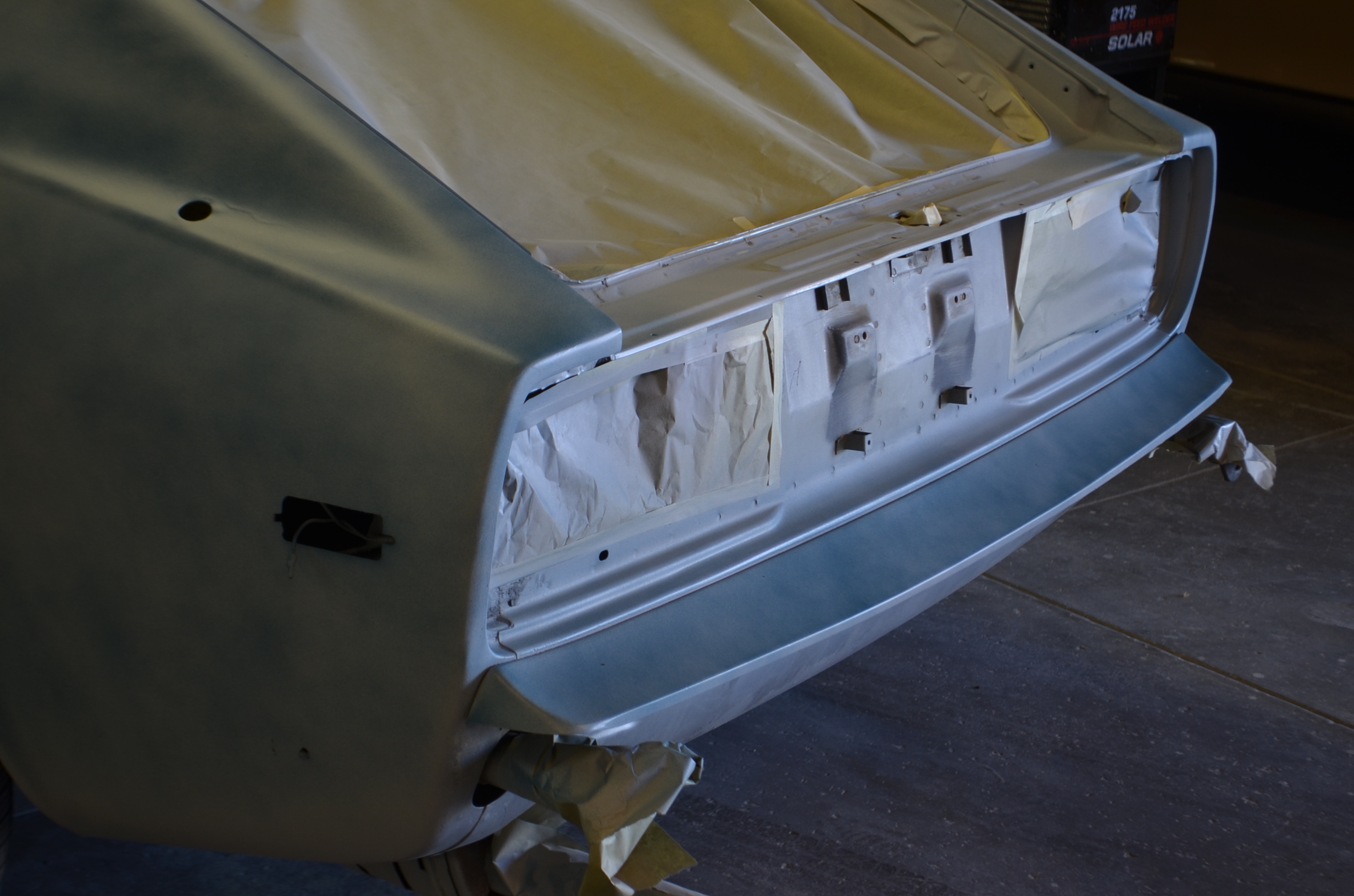 We were able to complete the rear tail lights, some trim repaint, side marker lights, headlights, hood louvers, hood rubbers, floorboard prepping, and the front feet area of the carpet.