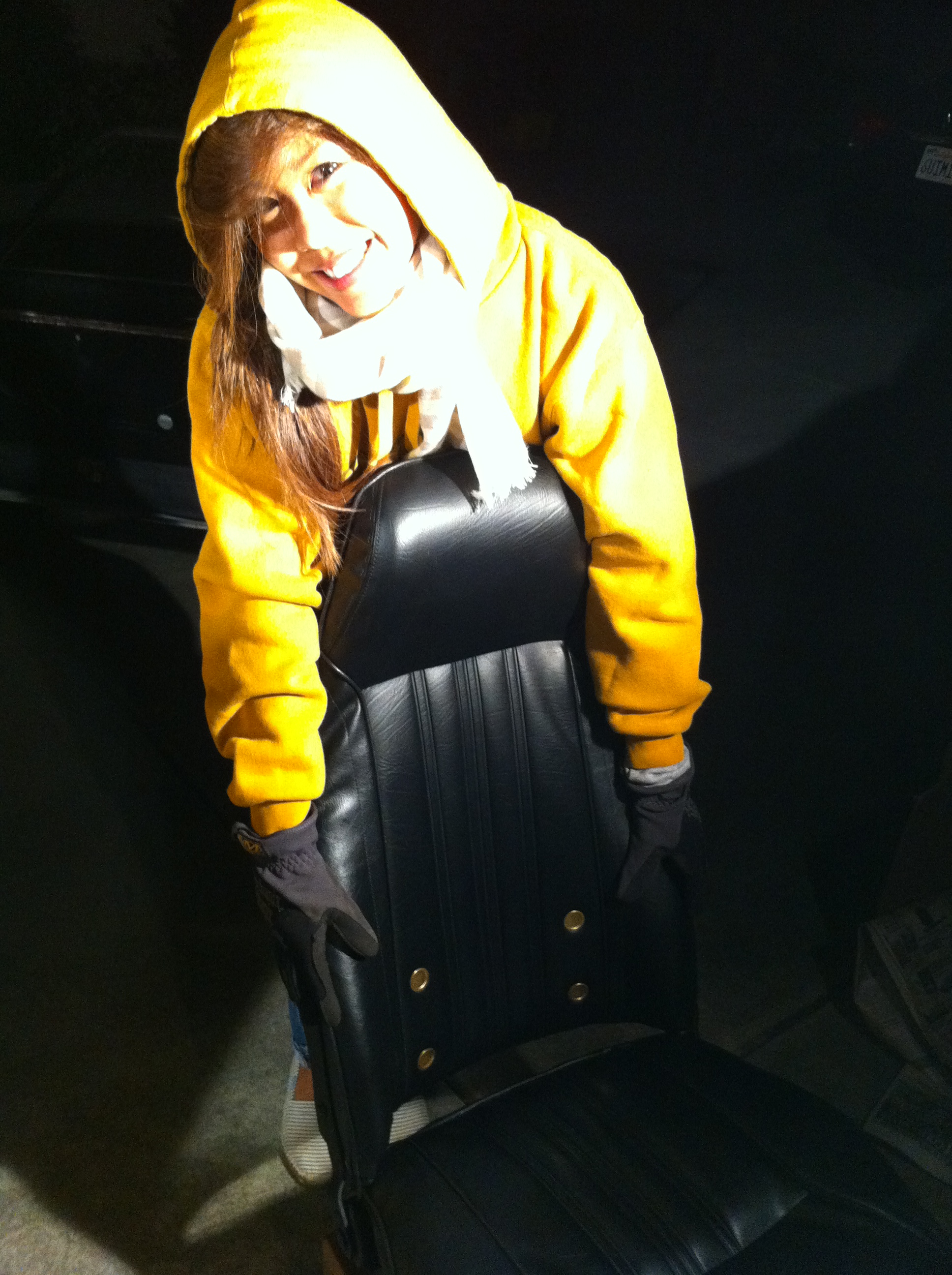 Later that evening, I had three more sets of hands arrive: my future sister-in-law Dana, my sister Kathryn and her boyfriend Jake! It was great, we all had our hands on this thing! Jake and Jerry tackled doors, Kennie and Dana helped clean parts, Kathryn helped me assemble the last seat, while Kris had the dreadful task of installing the rear driver-side interior quarter panel trim. Imagine having so many people who, for the majority, have never worked on cars (let alone re-assemble one) all help out at the same time – yes, it was a circus. Yes, you’ve gotta make sure all the correct bolts were used. But truly it was such a fun experience. I love working on projects with friends, more so with my brother and sister!