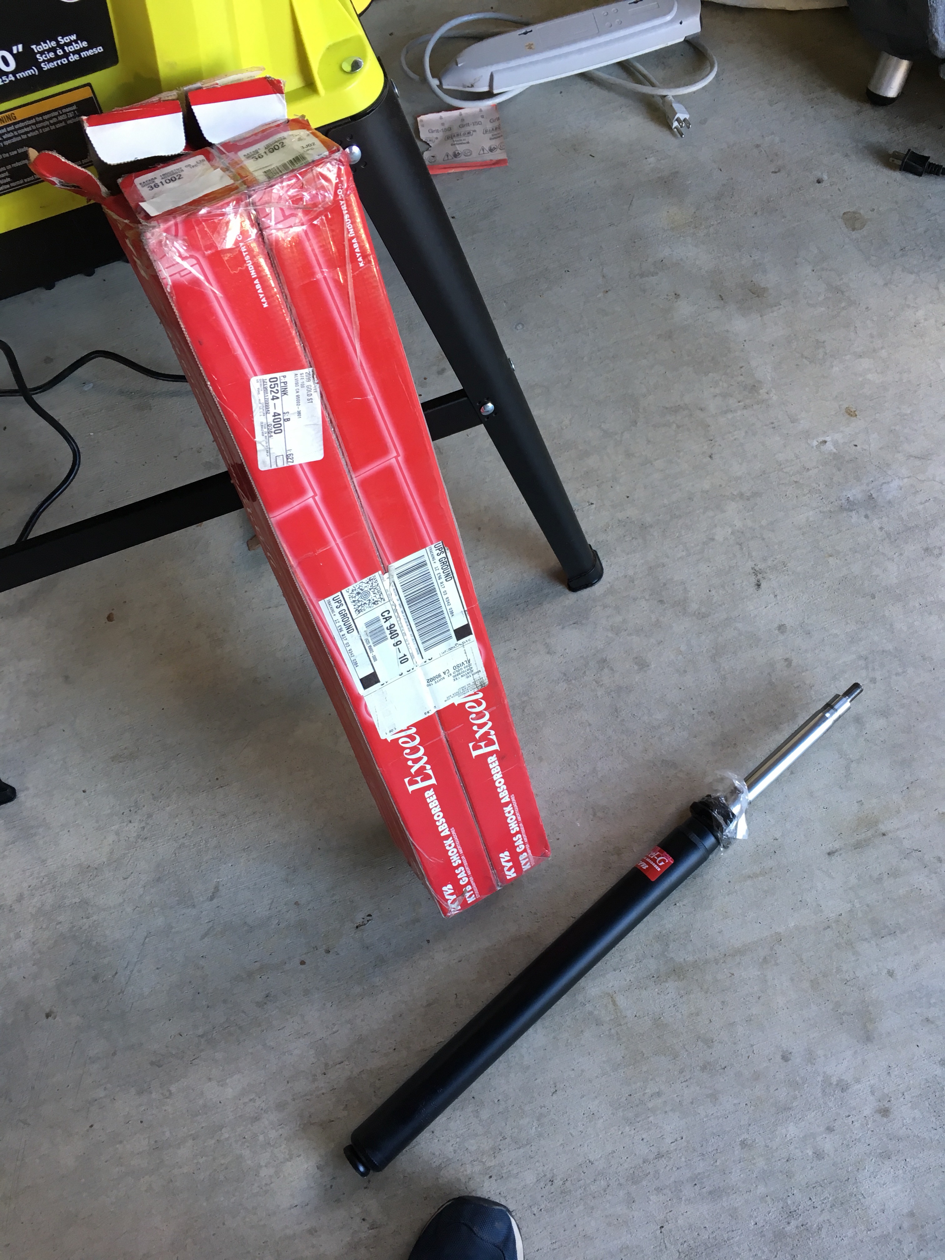 Assessing the parts… KYB Excel-G shocks, part #361002 (front), #361003 (rear) – Amazon: ~$159.