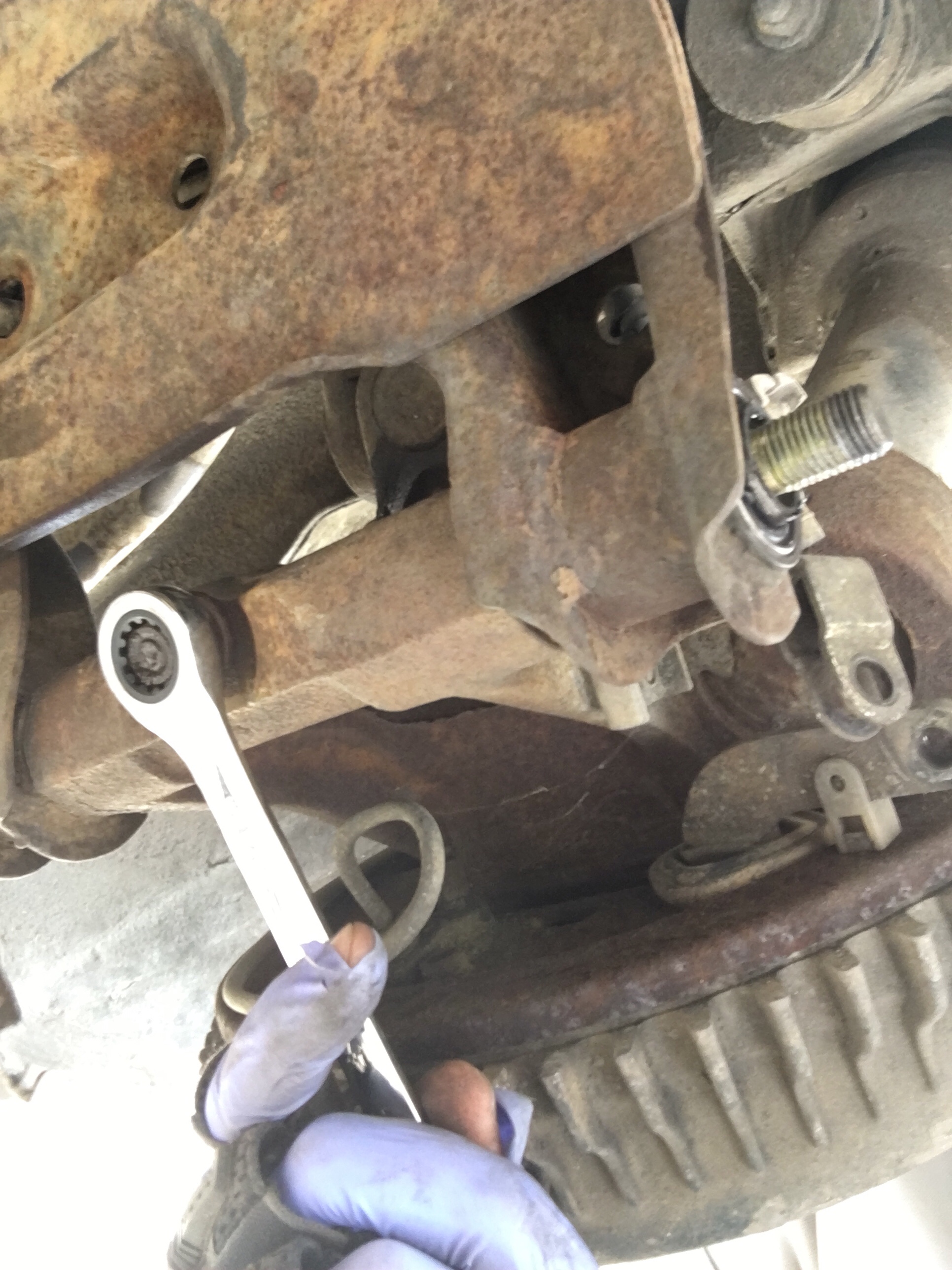 The spindle pin is quite an interesting beast as many have talked about. The spindle pin basically connects the strut / wheel assembly to the A-arm and rest of the suspension. Like most, even these are fully functional, many of the nuts have been rusted in place. Use a generous amount of WD-40, and a 17mm on a long socket wrench for leverage.