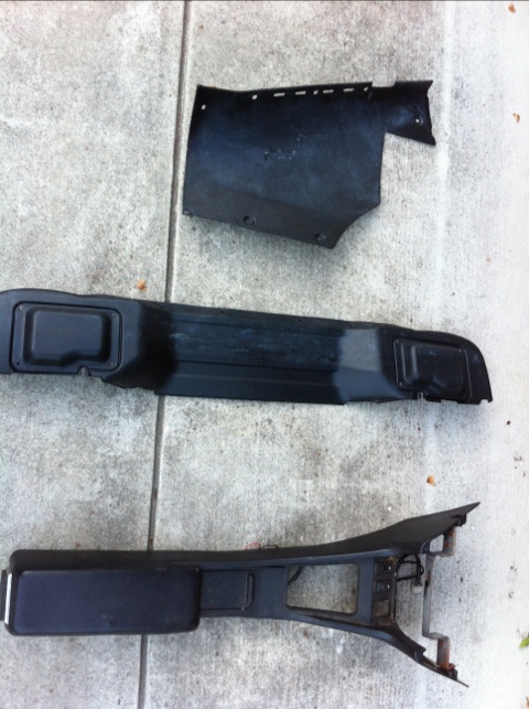 Quick trip up to Wild Bill produced the rear driver side quarter panel and back panel – saved $200! And whale tailed Andrew got me a uncracked center console (unlike the current). Looks like I’ll have to swap arm rests, buff the pieces up, and put them on. Let’s get to it!