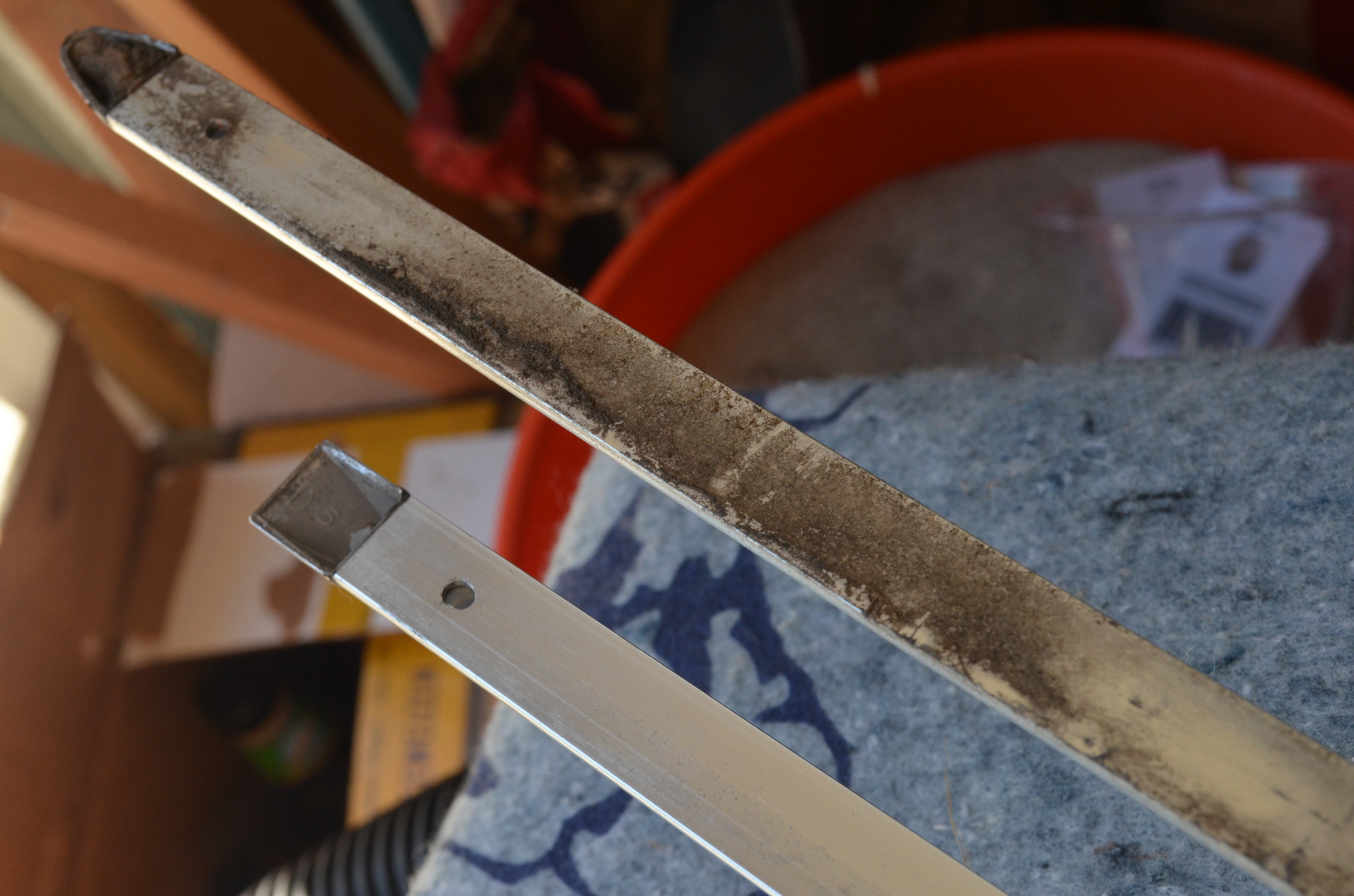 Since the side molding is all metal (save the rubber part), the chromed steel ends and aluminum rail can easily cleaned up with #0 and #0000 steel wool. The ends can be pulled off for further cleaning (there can be lots of dirt underneath). Additionally, Mother’s Aluminum and Mag polish can be used to restore them to a clean shine.