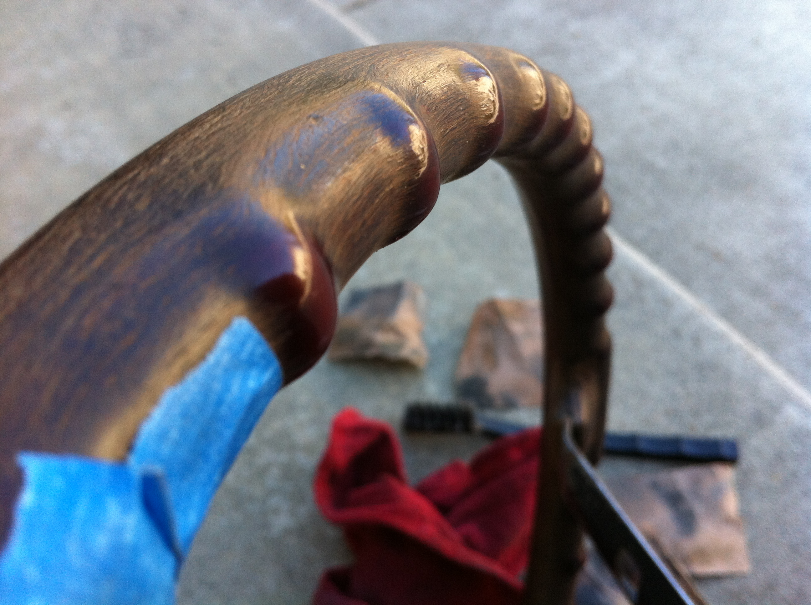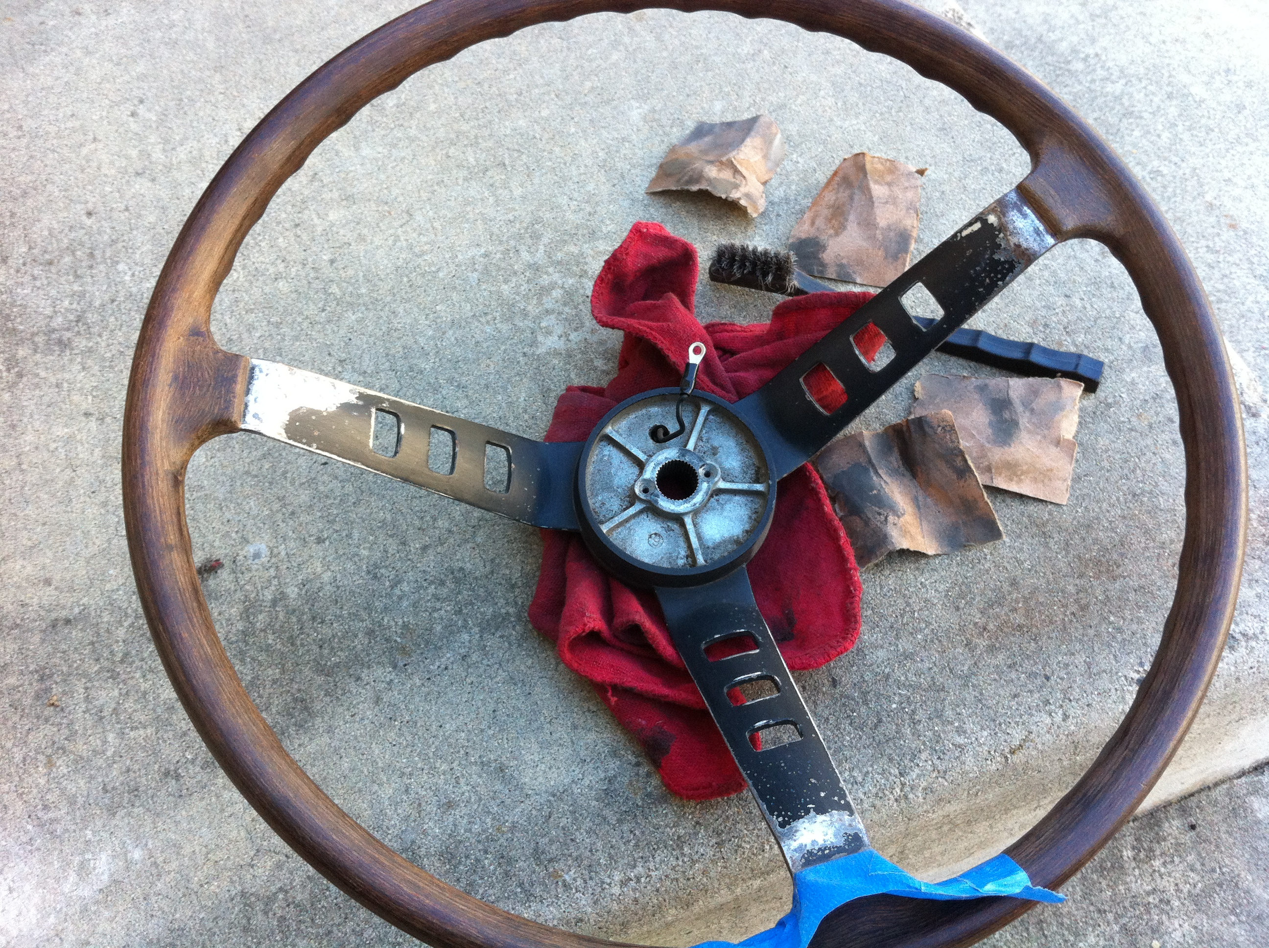 I’ve determined the wood grain on the wheel is actually worn pretty heavily, and needs a stain to bring it back to it’s former cherry color glory. That’ll be for “part 2”.