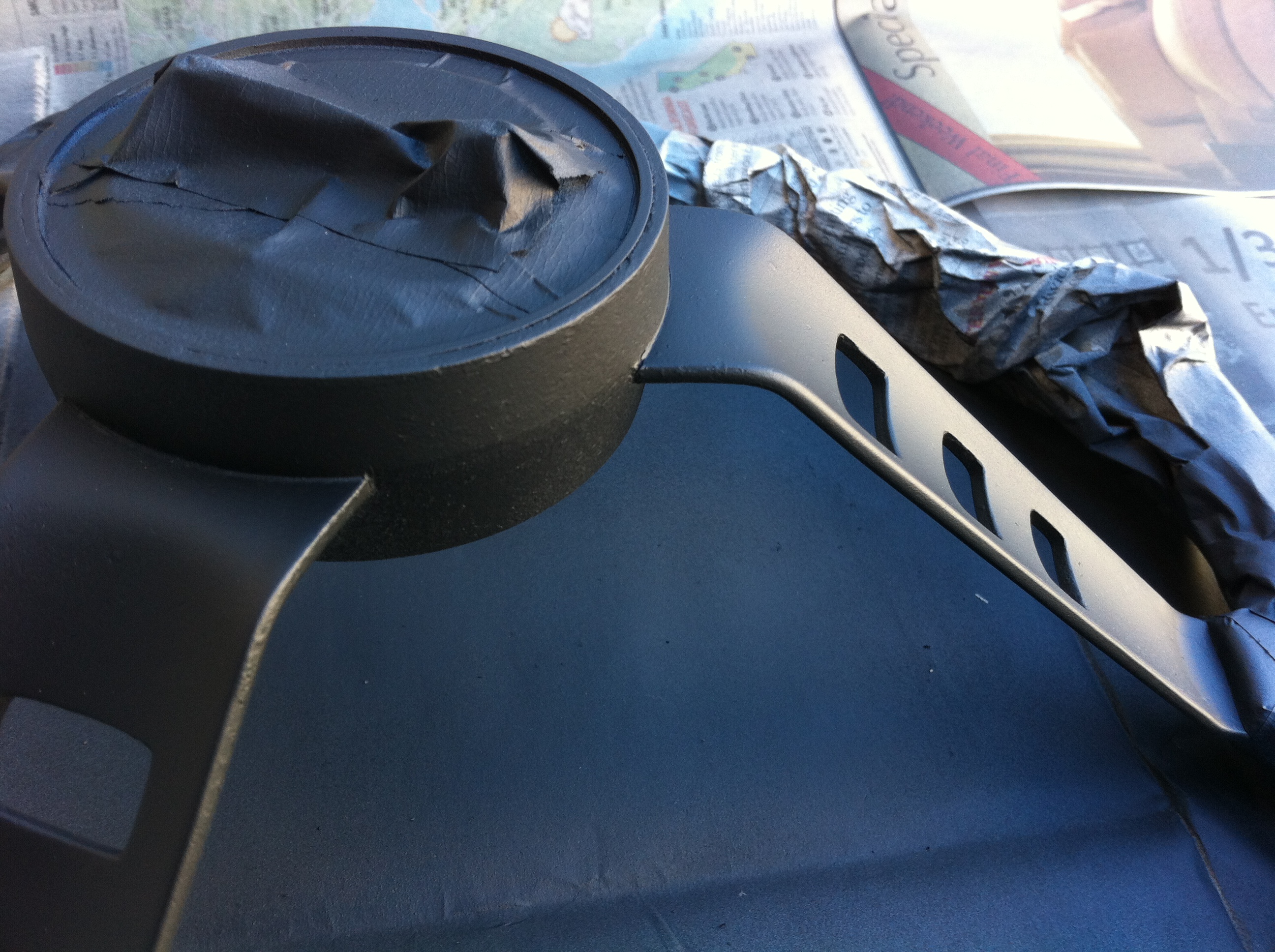 Sanded, 2 coats of primer, 3 coats of paint and a 2 coats of matte clear coat.