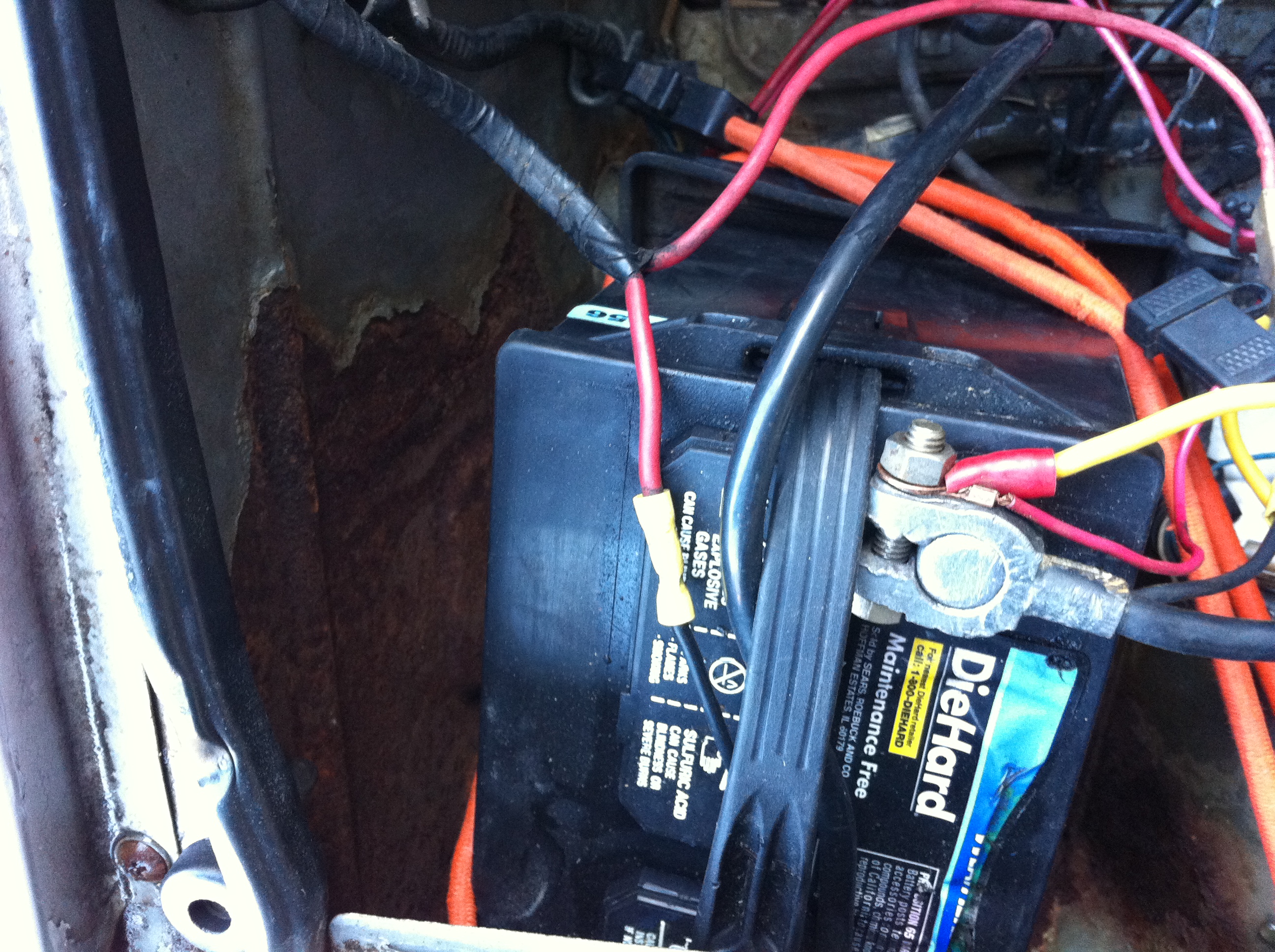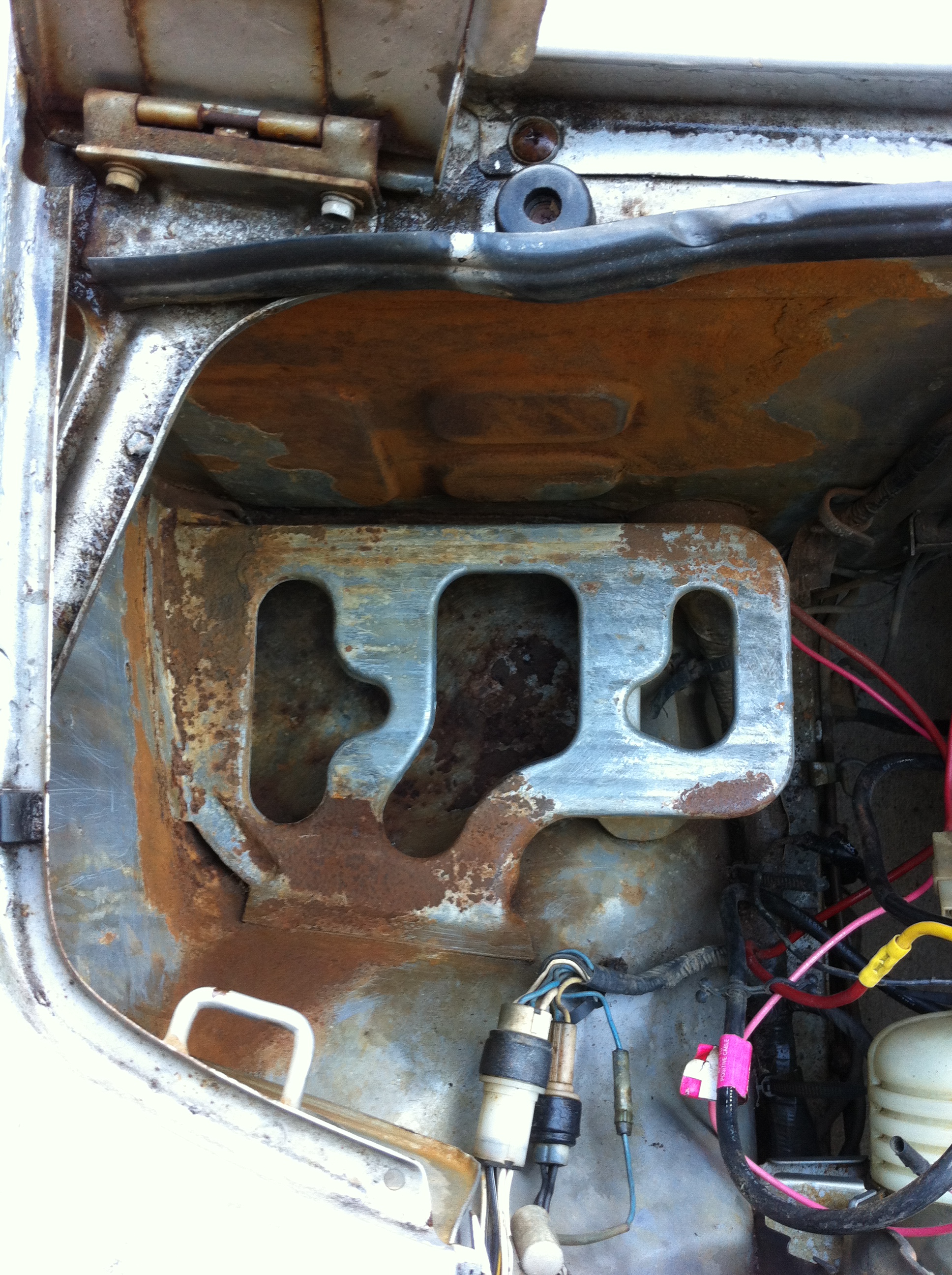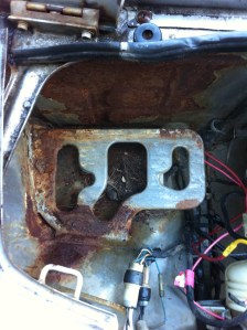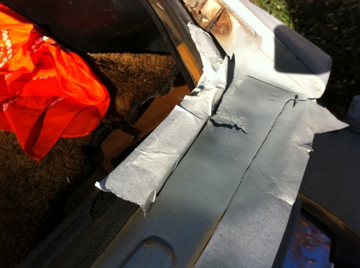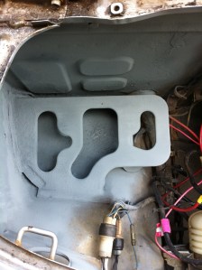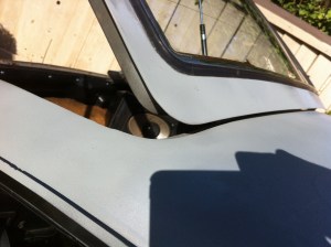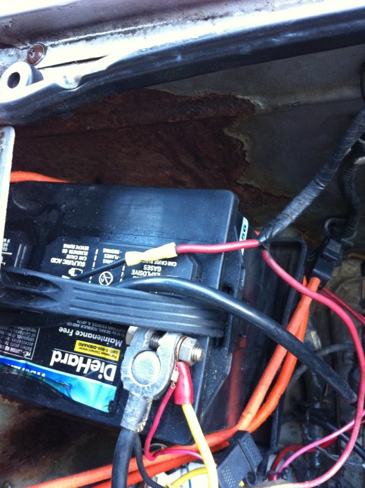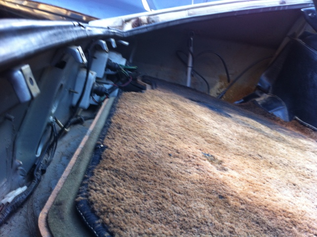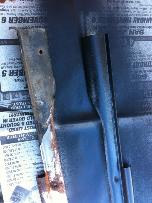 Wipers – Again, rains a’comin’! So I began to outfit the new wipers on the holder when.. wait a sec.. this isn’t like modern cars. Yep, it uses a pin, which fortunately, the wiper blade manufacturers have accounted for. There’s a tab that keeps in place, used the floor to help push the pin out – viola. Reversed steps to get the new blades on, and adjusted the wiper height w/ the screw to the motor. Upon sitting in the car, it looks a touch too high, so i’ll have to re-adjust that…test…aaaand the wiper motor doesn’t work. Tracking the problem maybe tomorrow’s effort.