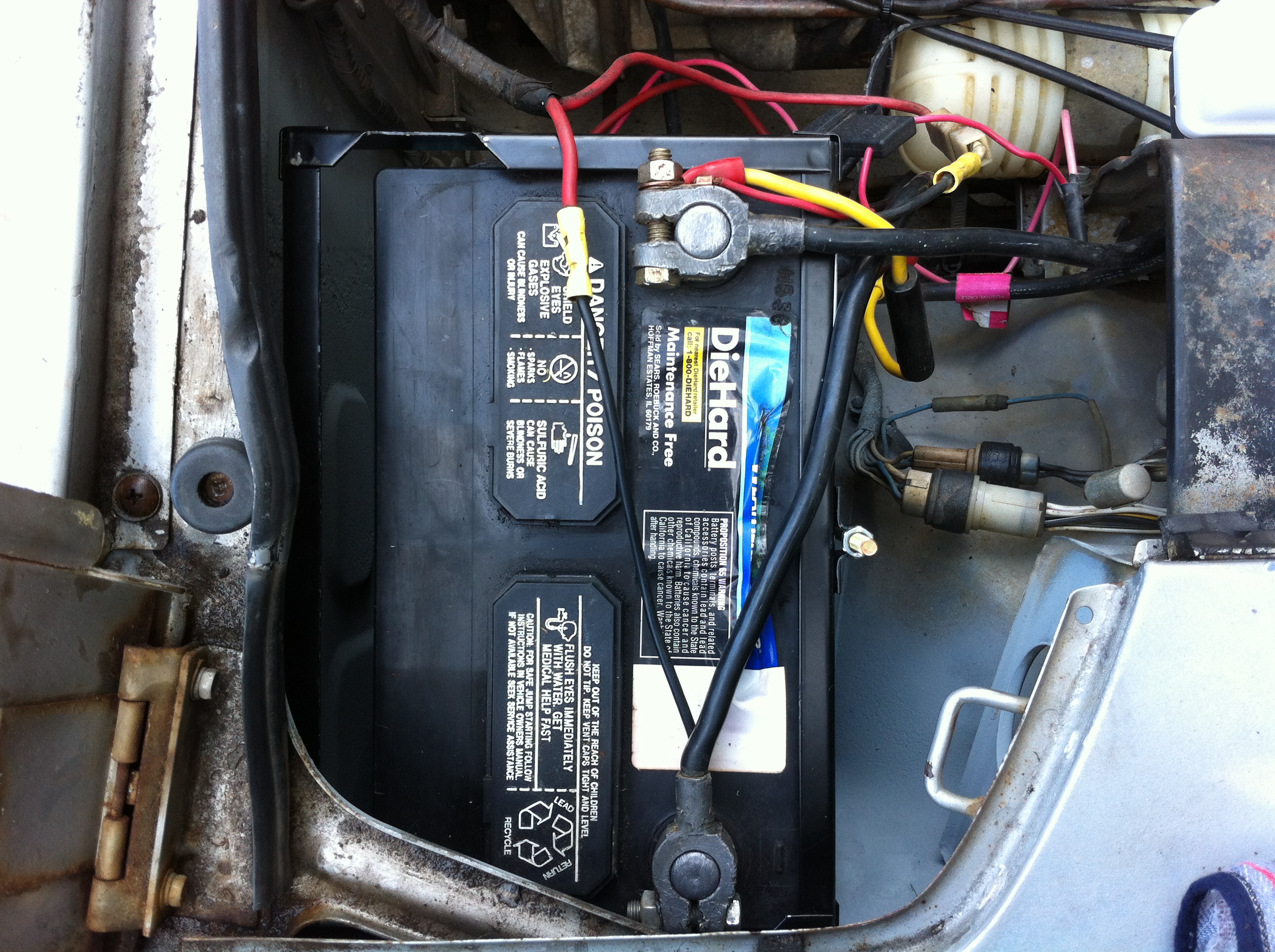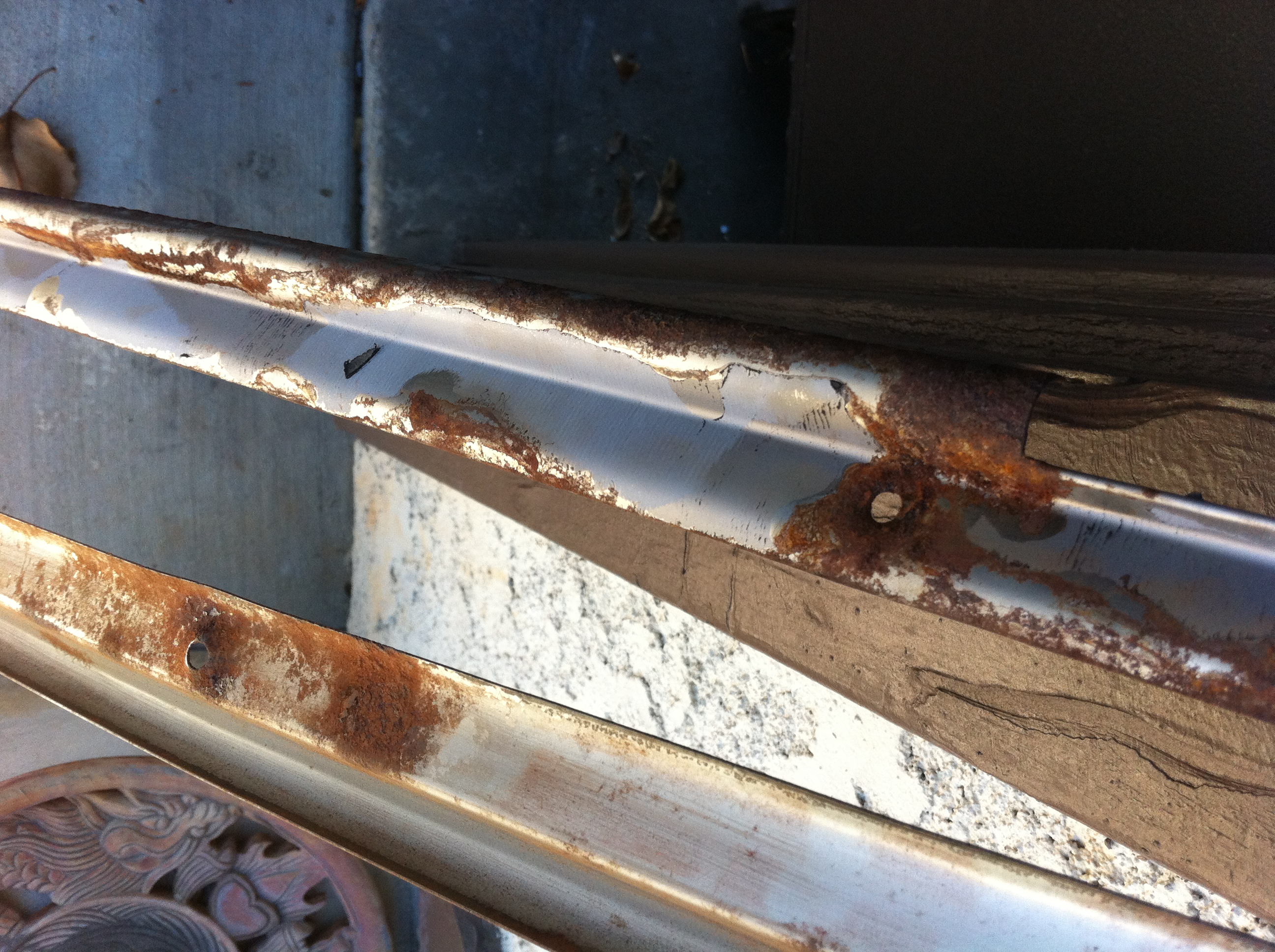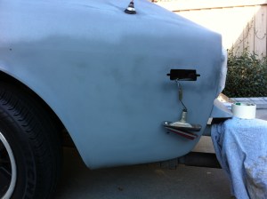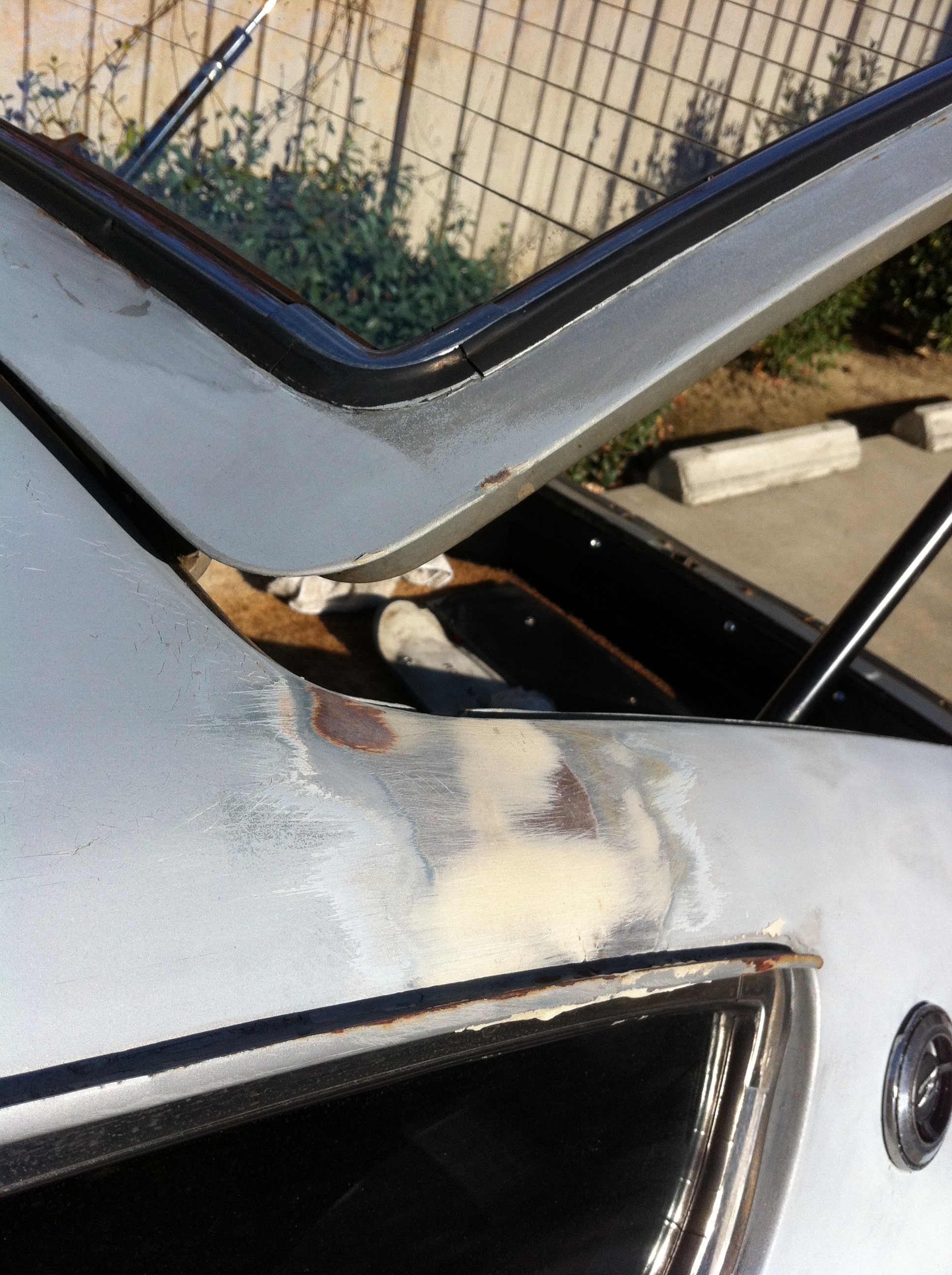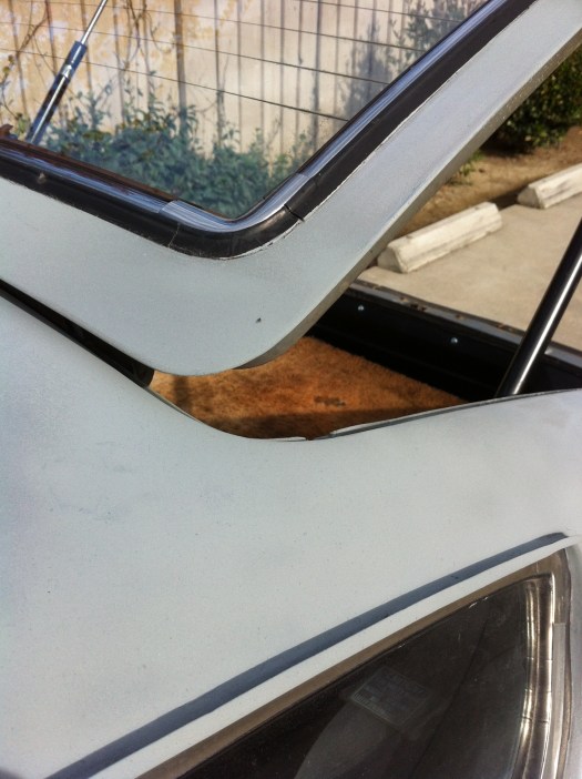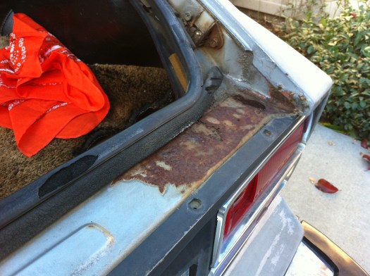 Minor Rust Work – Picked up a can of grey primer rust inhibitor to temporarily patch up the exposed rust spots before the rainy season hits. Already there’s moisture and water beads forming in the morning, so the weather is coming. Sanded some test areas to see how this stuff works. We’ve used some in black and of another brand previously on a motorcycle, but it’s only been 2 months and garaged, so this will be some real world testing. Quick tags on the inner hood (sanded, light rust), driver-side rear quarter panel (not sanded, previously bondo work), and a heavy spot under the passenger-side deck lid (not sanded, literally like a bit from the rust monster). I testing extremes to see what I can get away with.