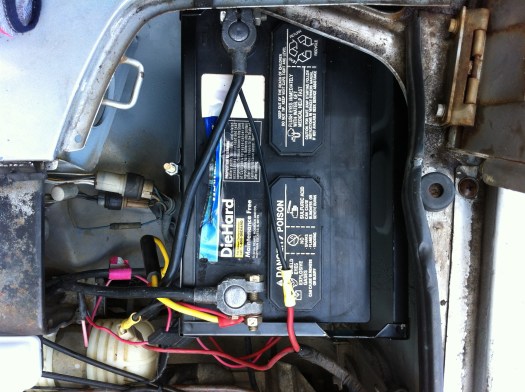 Squeek, Squeeeeeeek – Whenever I gave it some gas, there’s always this squeek that shrilled out from under the hood. Not good if you’re looking to turn heads in the bad way.. or trying to impress the parents that this was a good buy :] My Chilton’s Datsun manual is on it’s way, but i couldn’t wait till then. So upon checking the belts, I remembered my brother’s Datsun 510 manual said something about ‘tight..not too tight…1/2″ deflection..’ haha ok, well better than the +1″deflection this thing is giving now. One wheel had a very handy adjustment screw to lift it and give the belt the right tension. I’ll certainly revisit the belts once the manual comes in, but for now….squeek be gone!