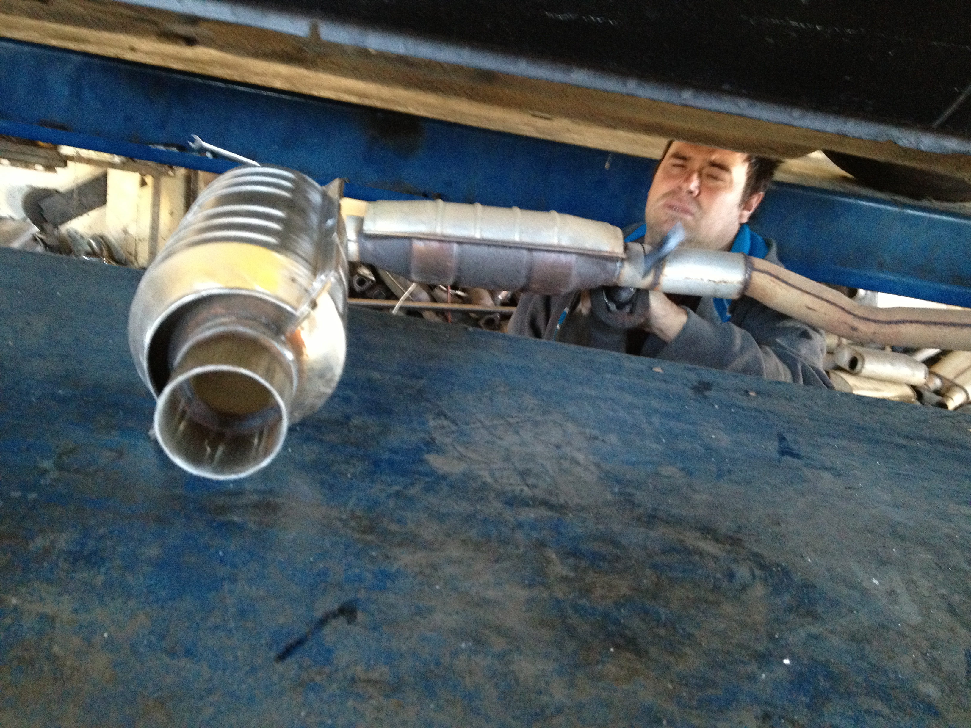 Over the phone, Acardio said he’d have it done in an hour and i could wait. He had that old street cat cut, dumped, and the new Magnaflow lion welded in like 10mins.. no really, more like 8.