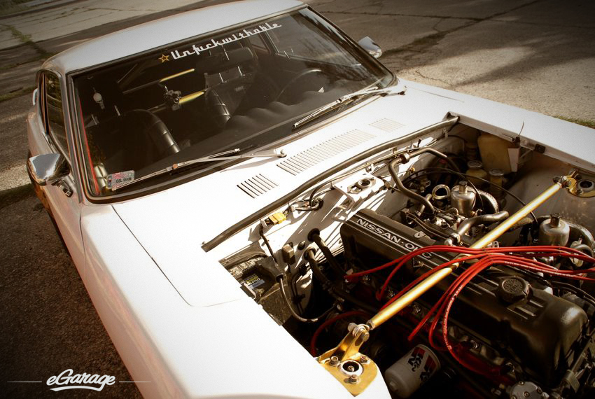 Hector’s 240z is powered by a L28et (turbo’d) riding on BC coilovers. Just check out that whale tail!